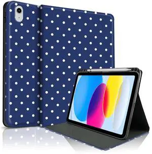 TopPerfekt Case for iPad 11th (A16) 11-inch 2025 / 10th Gen 10.9-inch 2022,Cute Polka Dot Stylish Aesthetics Design Protective Cover with Pencil Holder, Anti-Slip, Anti-Shock- Big White Dots DarkBlue
