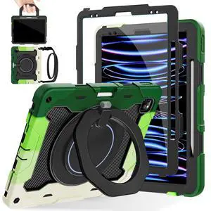 ROSROME for Air 11 inch Case M3 2025 / M2 2024, Air 7th/6th Generation-with HD Screen Protector, 360 Rotating Kickstand/Hand Strap, Shoulder Strap, Pen Holder, Heavy Duty Military Grade- Kids Friendly