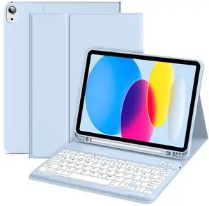 Lsmmpoba for iPad 11th 10th Generation Case with Keyboard 11/10.9 inch (2025/2022), Wireless Detachable Folio Blue Keyboard Cover with Pencil Holder for iPad (A16) 11th/10th Gen (Blue)