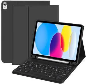 Lsmmpoba for iPad 11th 10th Generation Case with Keyboard 11/10.9 inch (2025/2022), Wireless Detachable Folio Black Keyboard Cover with Pencil Holder for iPad (A16) 11th/10th Gen (Black)