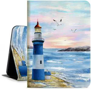 for iPad (A16) 11th/10th Generation Case 2025/2022, for iPad Case 11th/10Th Generation, for 10Th/11th Gen iPadCase Cover Auto Wake/Sleep Multi-Angle Viewing Adjustable Stand, Blue Lighthouse Seagull
