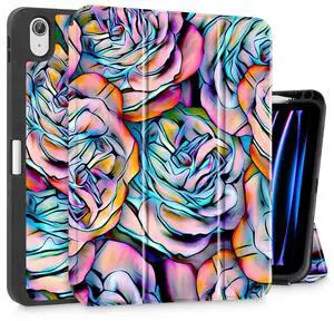 Mektron Case for iPad Air 11 inch (M3 2025 7th /M2 2024 6th), Compatible with iPad Air 10.9" (2022 5th Gen /2020 4th Gen) Tablet Cover Buit in Pencil Holder with Auto Wake/Sleep, Roses Succulents