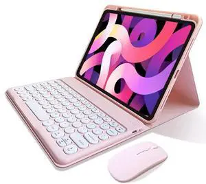 kaitesi Keyboard Case Mouse for iPad 11th Gen (A16, 2025) 11"/ iPad 10th Generation 2022 10.9" Case with Cute Round Keys Detachable Bluetooth Keyboard Cover,Pink