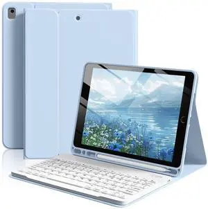 AnMengXinLing 10.2" Keyboard Case for iPad 9/8/7 (2021/2020/2019) Touchpad Detachable Keyboard with Pencil Holder - Slim Leather Folio Smart Cover