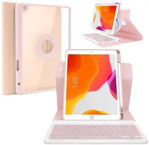 kaitesi Keyboard Case for iPad 9th Generation 8th 7th Gen 10.2"/ iPad Air 3rd Gen 10.5"/iPad Pro 10.5 inch Keyboard Case Detachable BT Keyboard Round Key (Dark Pink)