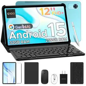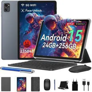 Blackview 12 Inch Tablet Android 15,Android Tablets with Keyboard Mouse Pen Case & SIM Card Slot,24GB RAM+256GB ROM(2TB),2.4K 120Hz FHD+ IPS Display, 9000mAh/33W Fast Charging,5G WiFi,GPS