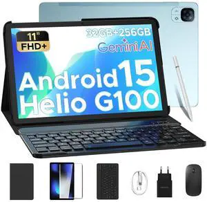 DOOGEE Tab E3 11 Inch Tablet with Keyboard, 32GB+256GB/2TB,Helio G100 Octa-Core Android 15 Tablets,Gemini AI Gaming Tablet, 8800mAh Battery, Tablets with Pen, Mouse&Case,Blue