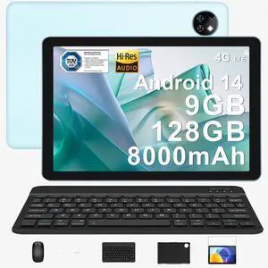 DOOGEE T10W Tablet with Keyboard,4G LTE Tablet,8000mAh Battery,128GB/1TB TF,Quad Core,Dual Camera,2.4G/5G WiFi,Keyboard and Mouse-Blue