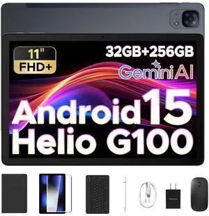 DOOGEE Tab E3 11 Inch Tablet with Keyboard, 32GB+256GB/2TB,Helio G100 Octa-Core Android 15 Tablets,Gemini AI Gaming Tablet, 8800mAh Battery, Tablets with Pen, Mouse&Case,Gray