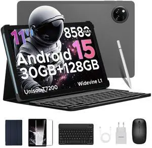 2026 Upgraded Android 15 Tablet, 11 inch Tablets with Keyboard, 24GB+128GB+2TB Expand, Octa-Core, 8000mAh, Gemini AI, 5G/2.4G WiFi, BT5.0, GMS, GPS, 2 in 1 Tablets with Case, Mouse, Stylus(Black)