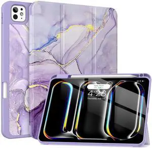 Soke Case for New iPad Pro 11 Inch (M5/M4) 5th Generation 2024-2025 with Pencil Holder - [Shockproof + Apple Pencil Charging + Auto Wake/Sleep], Soft TPU Back Cover for iPad Pro 11", Lilac Marble