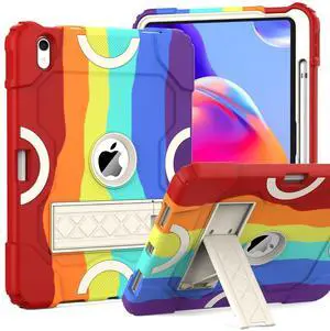 Grifobes for iPad 11-inch (A16) 2025 / 10th Generation Case 10.9 inch 2022, iPad 11th / 10th Case with Pencil Holder Heavy Duty Rugged Protective Cover with Kickstand Rainbow