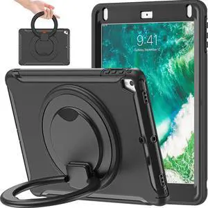 BATYUE Case for iPad 6th Generation 9.7 inch 2018, iPad 5th Gen 2017, iPad Air 2/ iPad Pro 9.7'',Shockproof Protective Cover with Pencil Holder &Rotating Kickstand,for Kids,Boys,Girls, Black