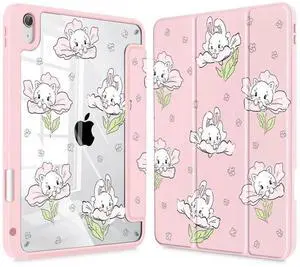 MEEgoodo Case for iPad Air 13 inch 2025(M3) / 2024(M2), Tablet Cases with Transparent Acrylic Back Shell, Cover with Pencil Holder + Auto Wake/Sleep + Trifold Stand, Trendy Bow & Hearts