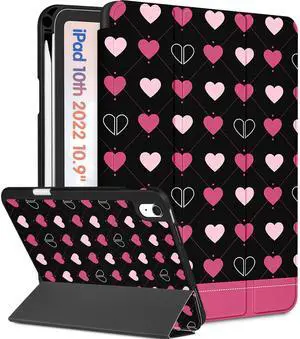 Wazzasoft for iPad A16 Case 2025 - for iPad 10th Generation Case Cute Women Girls Girly Kawaii Teens Heart Design Unique Pencil Holder Auto Sleep/Wake Tablet Cover for Apple 11/10 10.9 Inch