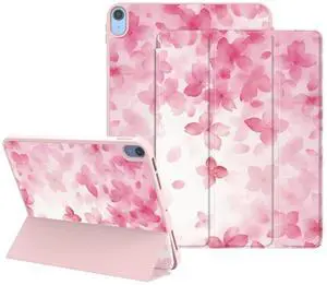 Lornpa Case for iPad (A16) 11th Generation 11 Inch 2025, iPad 10th Generation 10.9 Inch 2022, Protective Case with Pencil Holder, Trifold Smart Stand Cover with Cute Pattern for Girls, Cherry blossoms