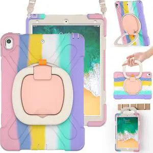 BATYUE iPad Air 3rd Generation Case 2019 Release, iPad Pro 10.5 Case 2017 Released; Rugged Heavy Duty Protective Cover with Pencil Holder, 360° Swivel Stand, Shoulder Strap; for Kids (Colourful Pink)
