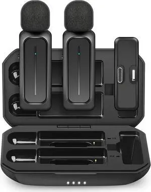JVFYI 2 Pcs Wireless Lavalier Microphone for iPhone iPad Android with Charging Case 7H Clip on Lapel Microphone Wireless for Video Recording Vlogging, YouTube, Interview, 3 Mode Denoise, 70ft