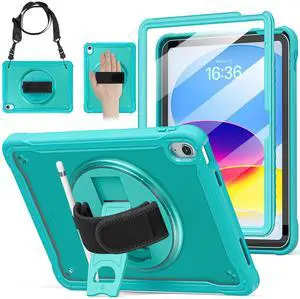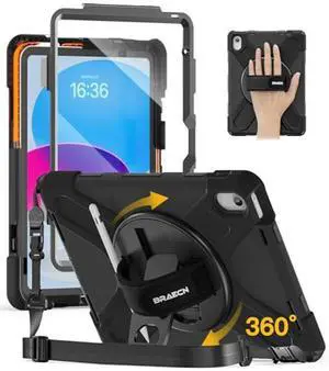 BRAECN for iPad (A16) 11th/10th Generation case 11/10.9 inch 2025/2022 Heavy Duty Shockproof Protective with Pencil Holder Screen Protector 360Rotating Stand Handle & Shoulder Strap Full Body Cover