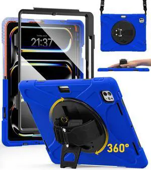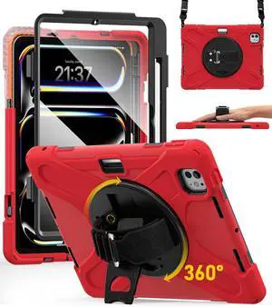 BRAECN for iPad Pro 13 inch Case M5 2025 & M5 2024 Heavy Duty Shockproof Protective with Pencil Holder Screen Protector 360°Rotating Stand Handle & Shoulder Strap Full Body Cover Kids Friendly