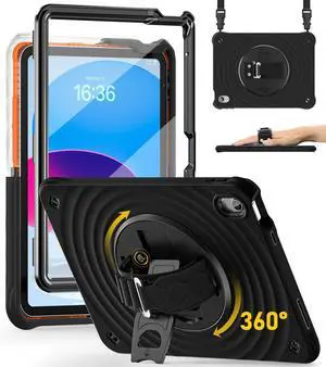 ZtotopCases for iPad (A16) 11th/10th Generation 11''/10.9'' with Screen Protector, Pen Holder, Handle Shoulder Strap,360 Rotating Stand Rugged Protective Case for iPad 11th Gen 2025(A3354/5),Orange
