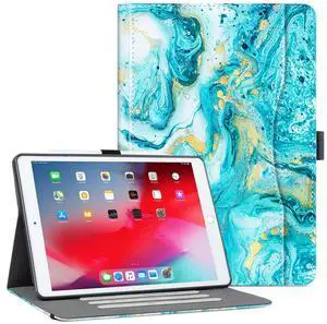 Vimorco Case for iPad 10.2 inch 7th/8th/9th Generation 2019/2020/2021 Folio Cover with Pocket, Multi-Angles Stand, Auto Wake/Sleep,Hand Strap with Pencil Holder, Green Marble