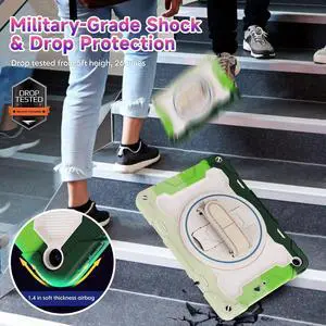 ROSROME Kids Case for iPad 10.2 inch iPad 9th/8th/7th Generation 2021/2020/2019 with Screen Protector,Rotating Stand Hand Strap Shoulder Strap Pencil Holder Heavy Duty Shock Resistance Case