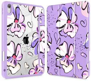 Mektron Case for iPad Air 11 inch (M3 2025 7th /M2 2024 6th), Compatible with iPad Air 10.9" (2022 5th Gen /2020 4th Gen), Buit in Pencil Holder with Shockproof Clear Shell, Flowers-Purple