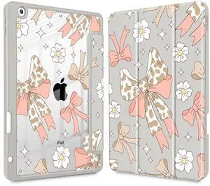 Tuiklol for iPad 10.2 case 2021 Gen 9th Release Built in Pencil Holder - Trifold Stand-Auto Wake/Sleep TPU Protection Stand Clear Back Cover for 2020 2019 [8th/7th] iPad 10.2 Case,Leopard Bow Gary