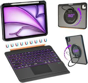 WIWU iPad Keyboard Case Air 13 Inch 360 Stand Magnetic Detachable Case with Keyboard 7 Color Backlit Keys Trackpad with Pencil Holder Black (for Air 13"(M3/M2) Pro 12.9" 6/5/4/3)