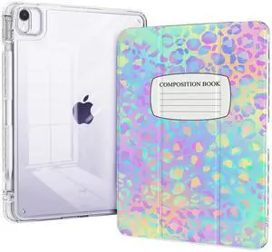Piznernico Trifold Case for ipad air 11 inch (M3 2025, M2 2024), ipad air 5th/4th Generation Case 10.9 2022/2020, Shockproof Clear Back Cover with Pencil Holder, Composition Book