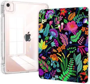 Piznernico for ipad air 11 inch M2/M3 Case 2024/2025, ipad air 5th/4th Generation Case 10.9, ipad Pro 11 Cover 4th/3th/2th/1st, Trifold Stand with Pencil Holder, Slim Clear Cover, Leaf Floral