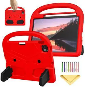 UUcovers Kids Case for iPad Air 11-inch M3/M2 (2025/2024) & iPad Pro 11 inch M4 (2024) with Pencil Holder/Kickstand, Lightweight Anti-Slip Handle Stand Soft EVA Foam Shockproof Rugged Cover, Red