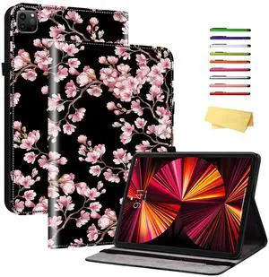 UUcovers for iPad Air 13 inch Case M3 2025/M2 2024 & iPad Pro 12.9 inch Case 6th/5th/4th/3rd Gen 2022/2021/2020/2018 with Pencil Holder [Auto Sleep/Wake] PU Leather Stand Cover,Pink Plum Blossom