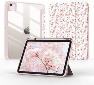 Jarviwiin Case for iPad Air 13 inch M3/M2 2025/2024, Slim Lightweight Tri-Fold Stand Smart Folio Auto Wake/Sleep 13" Case with Clear Back/Pencil Holder for iPad 13 Air Flower Cover(Floral Pink)
