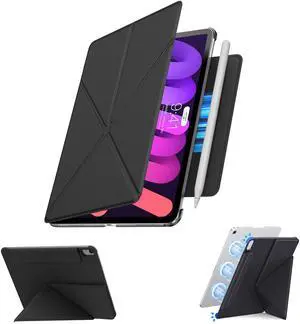 for iPad mini 7 (A17 pro) case/iPad mini 6 case, Slim Powerful Magnetic Attachment Corner Protective iPad Folio Case with Auto Wake/Sleep and Hidden Pencil Holder (Midnight Black, iPad mini 7/6)
