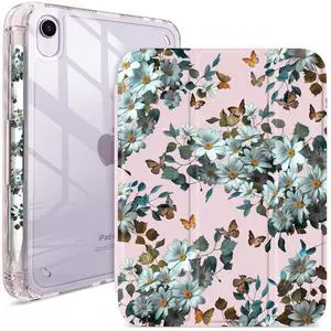 iPad mini 6/7 Case (8.3") with Pencil Holder Hot Pink Acrylic Cover with Flower Print, Tri-Fold Stand, Auto Wake/Sleep, Fits A2567/A2568/A2569 & A17 Pro (Simple Daisies Flowers)