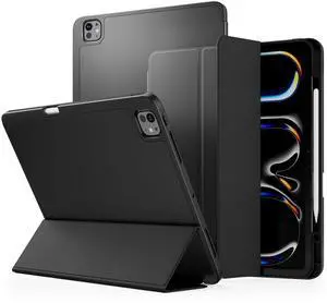 VAKS for iPad Pro 13 inch Case M4 2024 7th Generation with Pencil Holder, Trifold Stand Smart Cover Auto Wake/Sleep, Supports Apple Pencil 2 / Pro, Soft TPU Back, Black