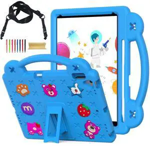 for iPad A16 11th 10th Generation Case 2025 2022 for Kids Boys, with Shoulder Strap Cute DIY Figures Kids Friendly Shockproof Handle Stand Protective Case Cover for Apple iPad 11th 10th Gen,SkyBlue