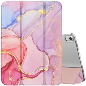 MoKo for iPad (A16) 11th Generation Case 2025, iPad 10th Generation Case 2022, Slim Stand Hard PC Translucent Back Shell Smart Cover Case for iPad 11th Gen 11 inch 2025, Light Pink Gold Marble