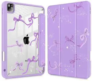 Tuiklol for iPad Pro 11 Inch Case M2 2022 Generation 4th -Built-in Pencil Holder Shockproof Cover Clear Transparent Back Shell Fit for iPad 11 2021 2020 2018 Gen 3rd/2nd/1st for Kid, Bow-Purple