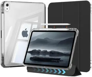SQQSOOZ Clear Sliding Case for iPad (A16) 11th/10th Generation (2025/2022, 11/10.9 Inch) with Pencil Holder, Slim Detachable 4-Way Stand (Horizontal/Vertical) Cover, Auto Sleep/Wake, Black