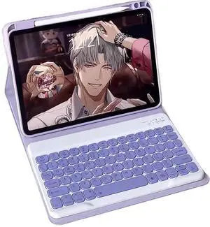 AnMengXinLing for iPad 11th(A16)/10th Generation Case with KeyboardSlim Candy Wireless Detachable Keyboard Case with Pencil Holder, Purple