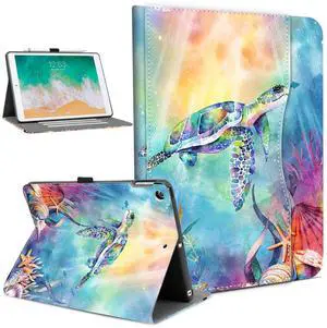 Lokigo for iPad 9th/8th/7th Generation 10.2 Inch Case 2021/2020/2019, IPad Cover with Apple Pencil Holder - Auto Wake/Sleep and Multiple Viewing Angles, Turtle