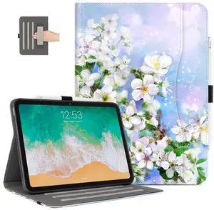 Lalumix for iPad (A16) 11Th/10Th Generation Case 2025/2022, for iPad Case 11Th/10Th Generation, 10Th/11Th Gen iPadCase Cover Pencil Holder/Hand Strap/Pocket/Adjustable Stand, Blue Flower