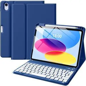 Wenlaty for iPad (A16) 11th/10th Generation Case with Keyboard - Detachable Wireless, Thin & Light Folio Keyboard Cover with Pencil Holder, for iPad 11-inch 11th 2025/10.9-inch 10th 2022, Navy Blue