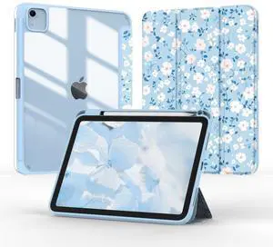 Jarviwiin Case for iPad Air 11 Inch M3/M2 2025/2024, iPad Air 5th/4th Generation 10.9" 2022/2020, Tri-Fold Folio Auto Wake/Sleep Cover with Clear Back/Pencil Holder for Air 5 4 (Floral Blue)