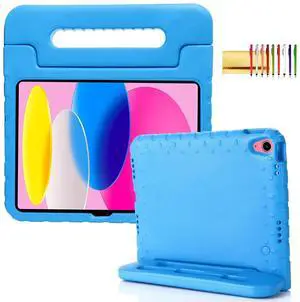 Kids Case for iPad 10th Generation (2022), iPad 11" A16 2025 Case with Pencil Holder, Techcircle Handle Stand Lightweight EVA Foam Bumper Protective Rugged Drop Protection Child Proof Cover, Blue