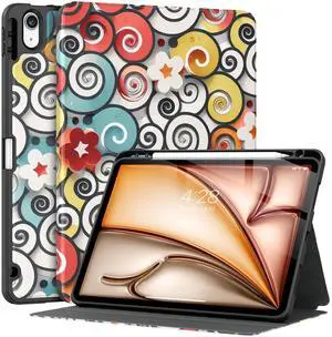 Supveco Case for iPad Air 11 Inch (M3 2025/M2 2024),iPad Air 5th/4th Generation 10.9 Inch 2022/2020 with Pencil Holder-[Auto Wake/Sleep],Premium Folio Stand Soft TPU Back Cover-Clouds Flower