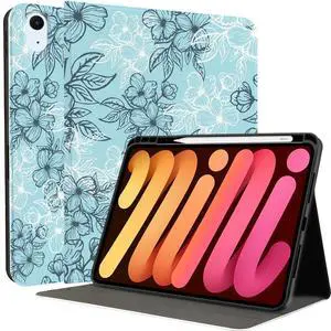 Uppuppy Case for iPad mini 5/4/3/2/1 Cartoon Aesthetic Cute Flowers Floral 5th/4th Generation Kawaii Partten Folio Cover Fashion Slim Stand Cases Women Teens Girls Auto Sleep/Wake for iPad 7.9 inch